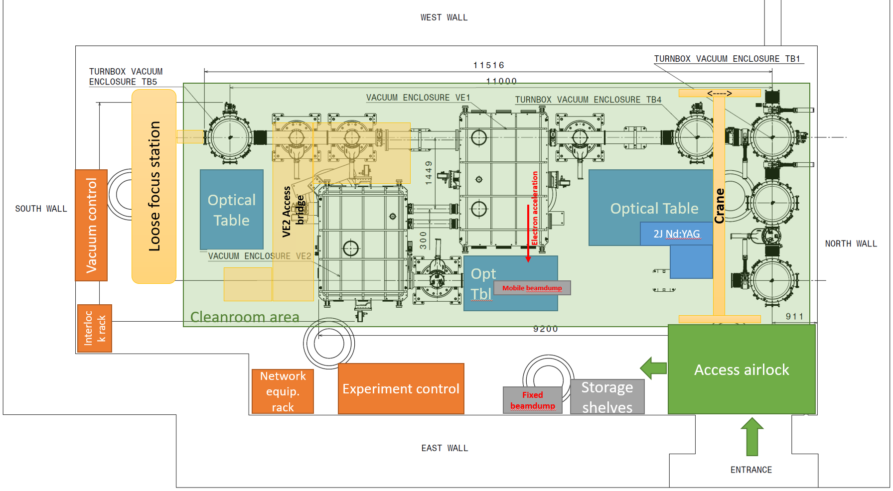 The entire vacuum and optical systems are located in an ISO7 soft-wall cleanroom. All components brought in by users for the experiment must observe this standard.